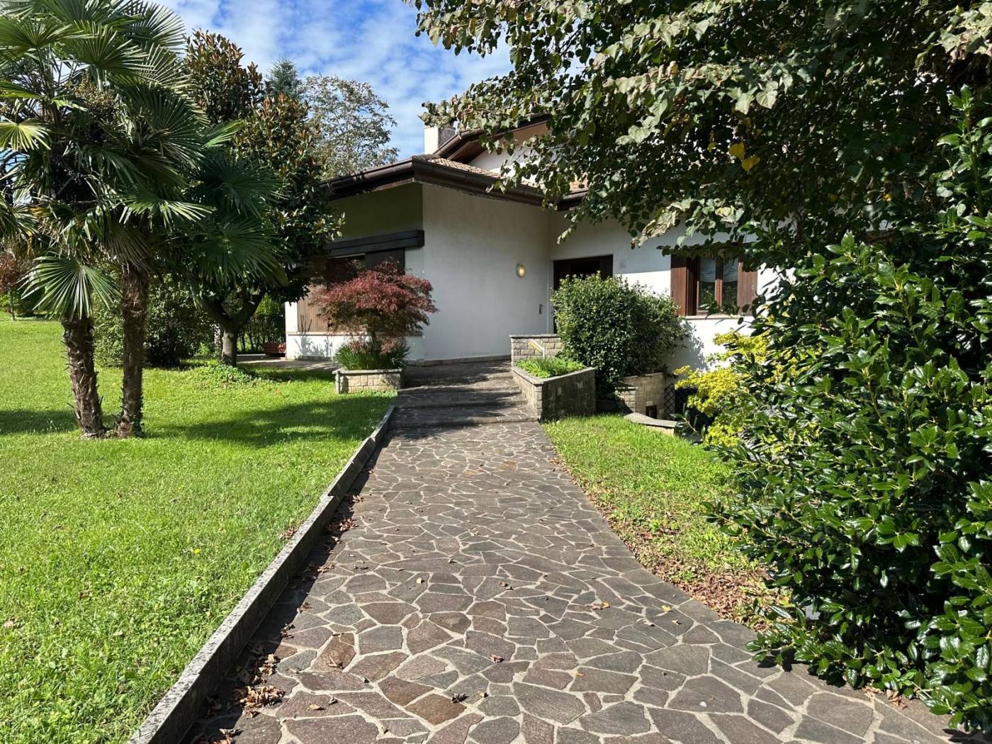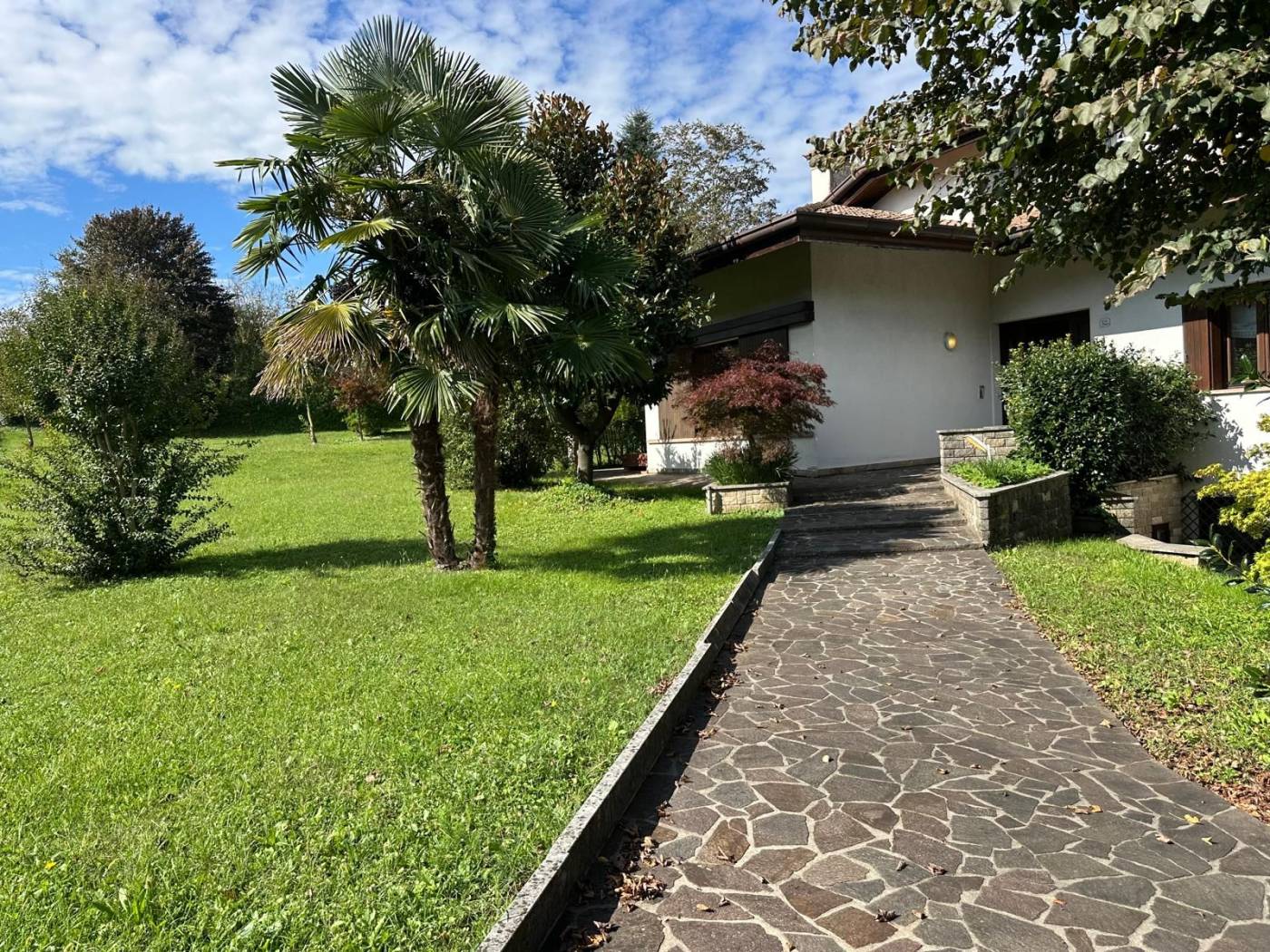 Un curato giardino con alberi a medio e alto fusto, piante da fiori e decoro circonda la casa su tutti i quattro lati e un comodo vialetto d'ingresso conduce all'interno dell'abitazione dove veniamo accolti da un ampissimo e luminoso salone con camino , da una cucina abitabile arredata e con uscita sullo spazioso patio esterno , da una zona di dispensa che conduce al bagno di servizio, alle due camere matrimoniali con uscita sul terrazzo, allo studio (3° camera ) e al bagno padronale molto ampio e comodo. Il corridoio ospita una serie di armadi fatti su misura idonei per ottimizzare lo spazio.